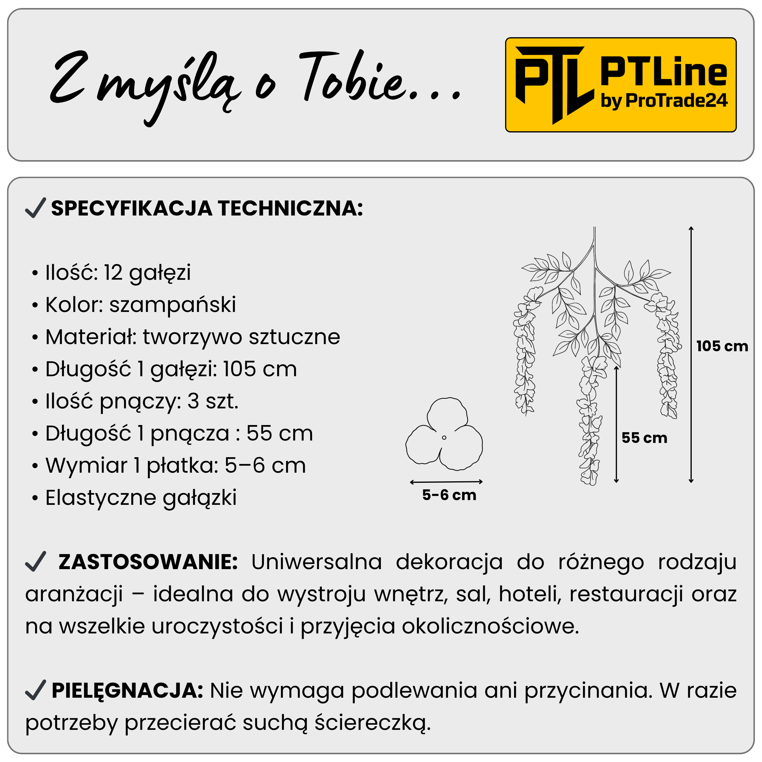 Długość 1 pnącza kwiatowego: 55 cm