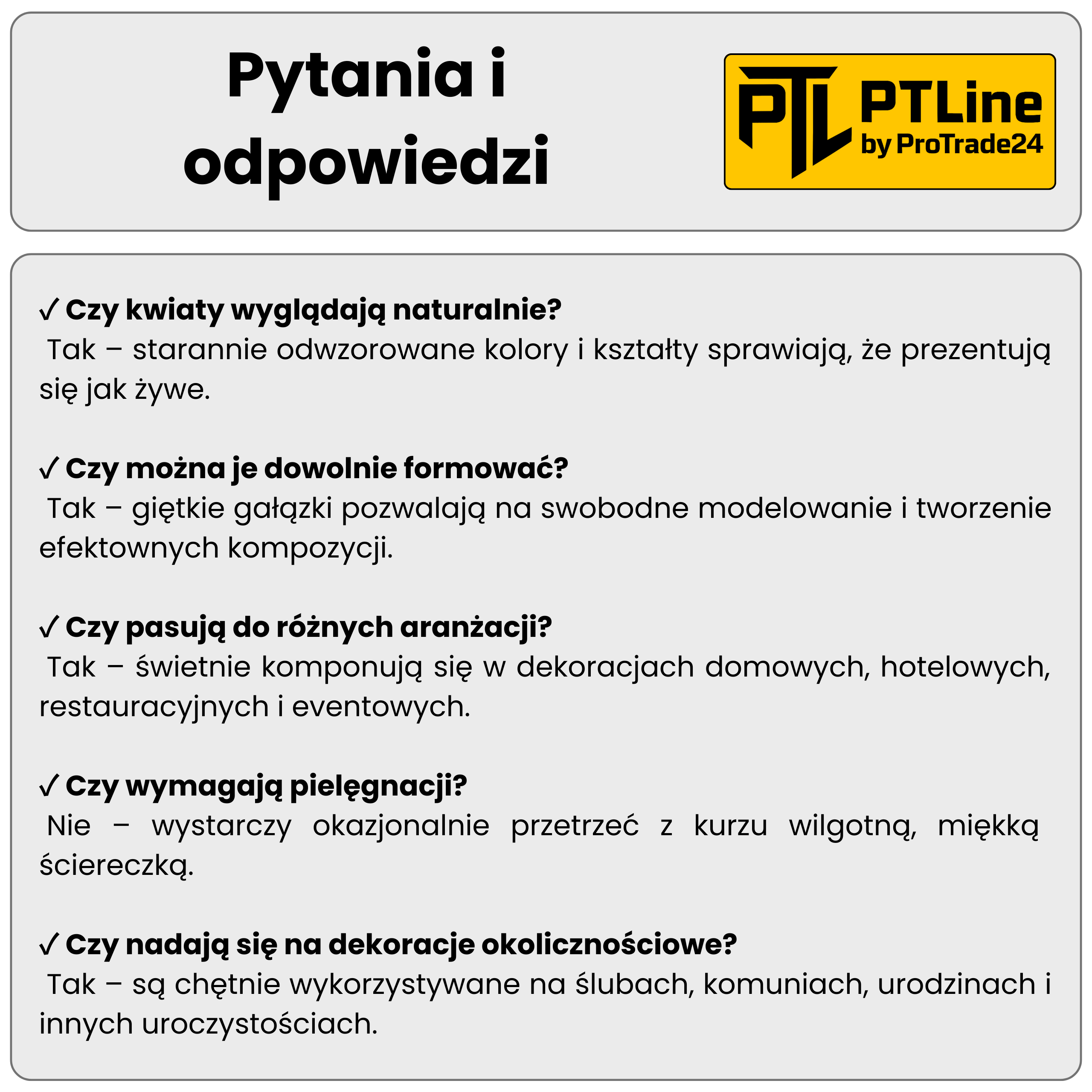 ➡️ Wysoka jakość wykonania: Kwiaty cechuje wyjątkowa jakość wykonania, co zapewnia im długotrwały i piękny wygląd.