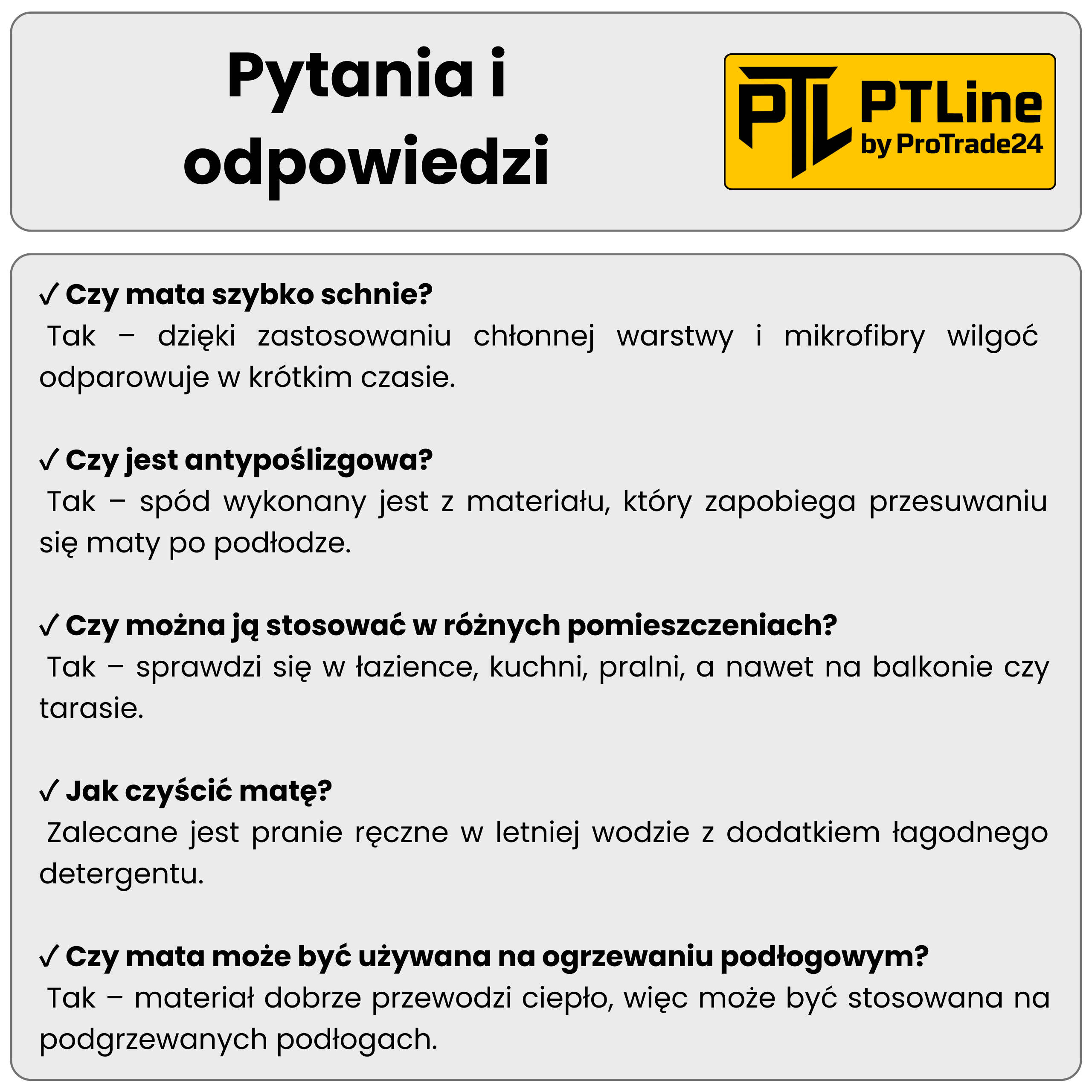 • Unikaj silnych środków chemicznych – mogą uszkodzić materiał lub sprawić, że dywanik stanie się śliski.