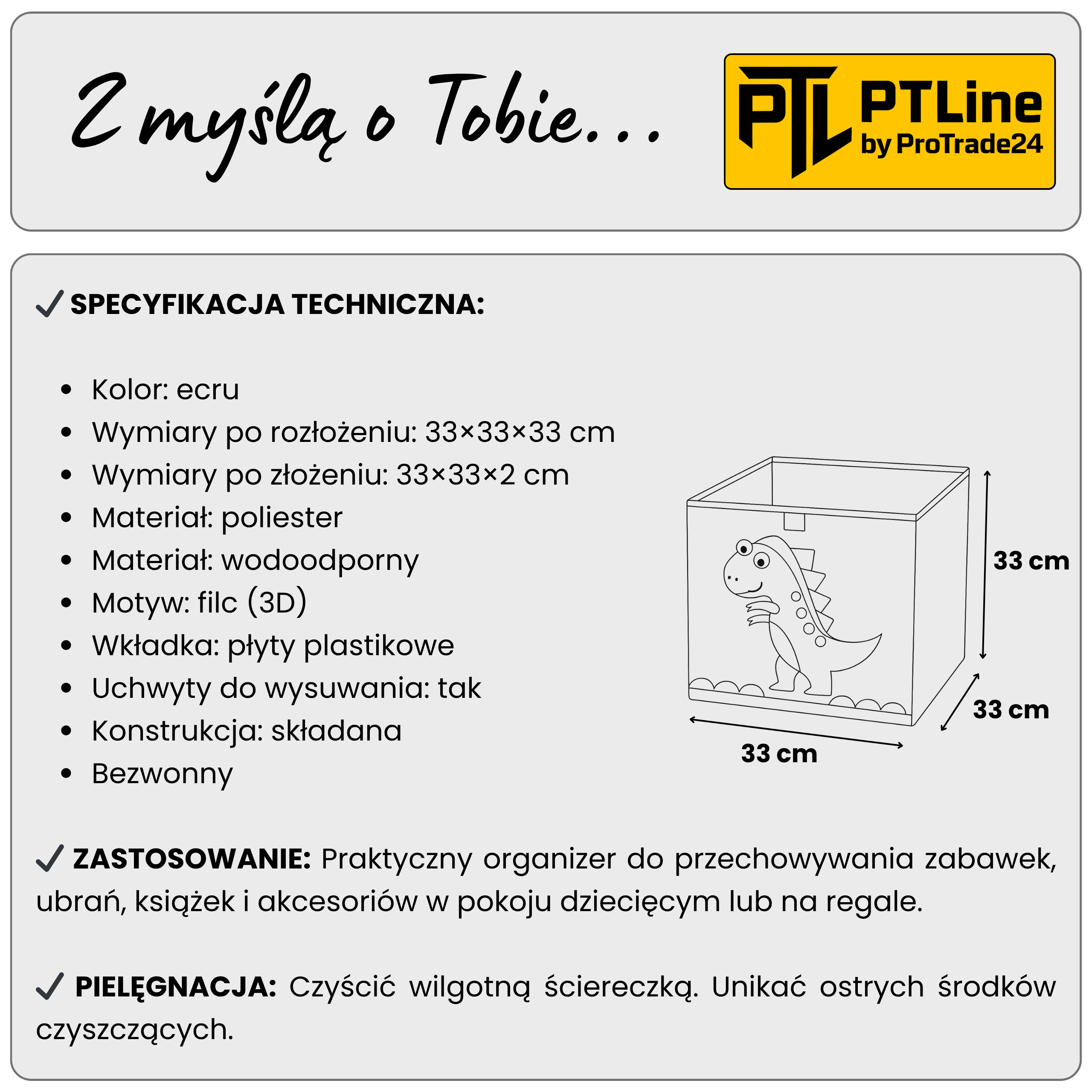 Organizer składany, sztywny 33x33x33 cm, kolor ecru. Idealny do regału na zabawki, książki, akcesoria dziecięce. Mocna konstrukcja, wodoodporny. Marka: PTLine by ProTrade24. Sklep ProTrade24.