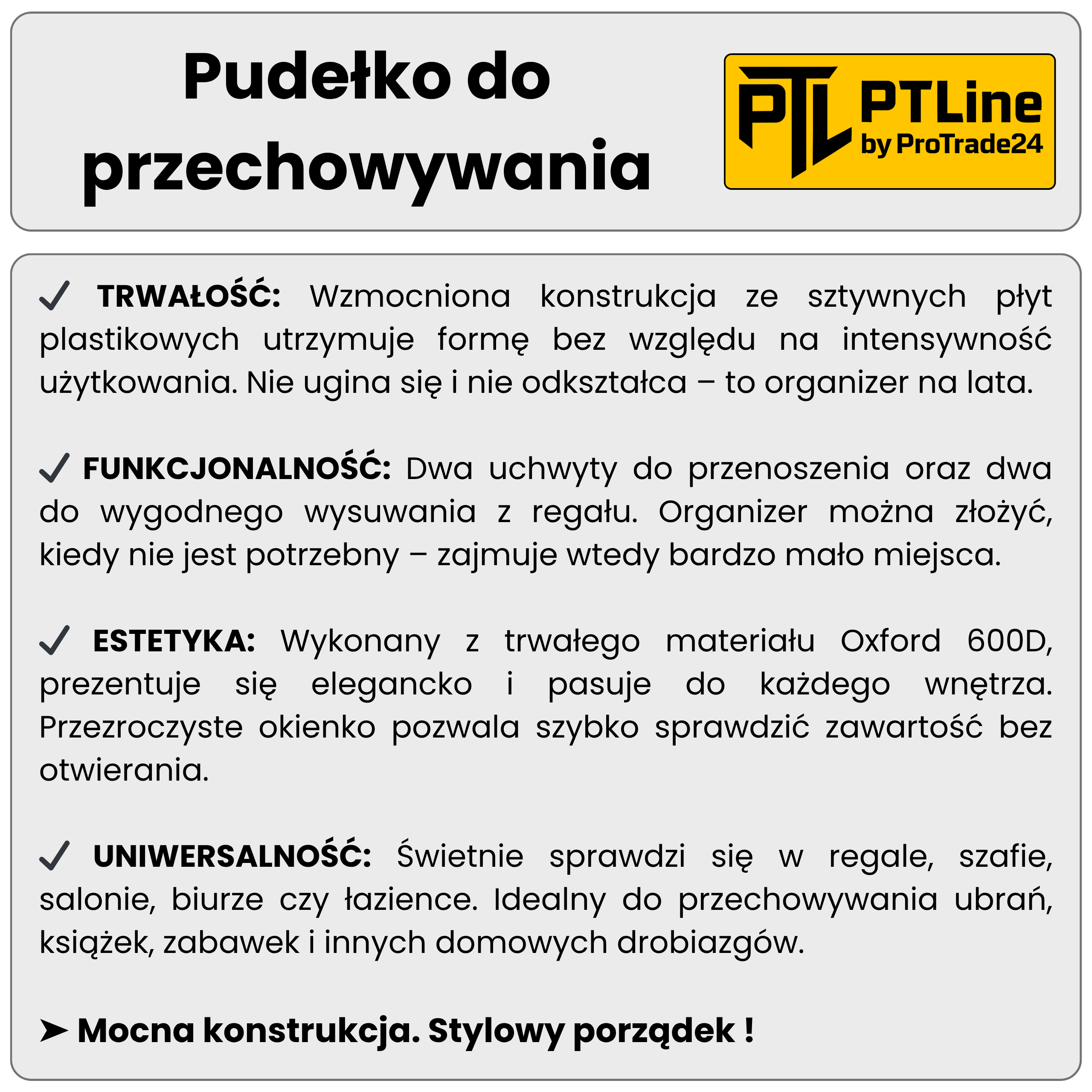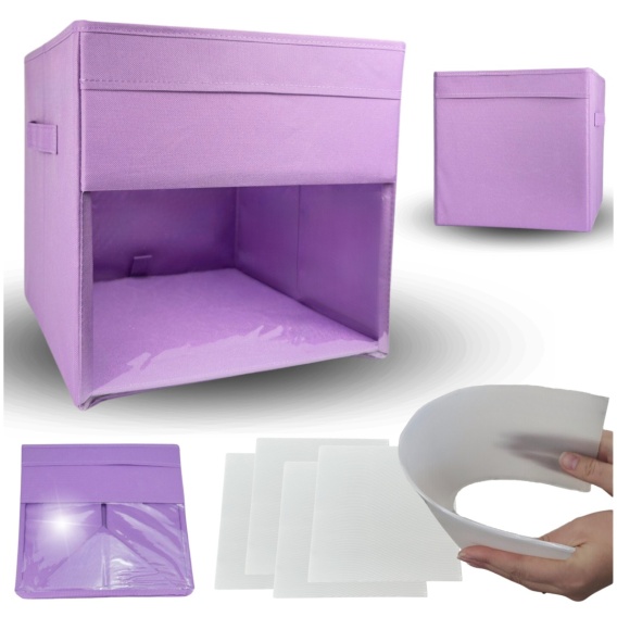 Organizer składany, sztywny 30x30x30 cm. Kolor fioletowy (lawenda). Idealny do regału na zabawki, ubrania i książki. Mocna konstrukcja, wygodne uchwyty. Marka: PTLine by ProTrade24. Sklep ProTrade24.
