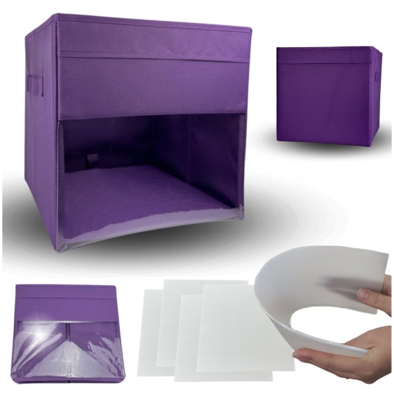 Organizer składany, sztywny 30x30x30 cm. Kolor fioletowy (śliwkowy). Idealny do regału na zabawki, książki, do biura. Mocna konstrukcja, wygodne uchwyty. Marka: PTLine by ProTrade24. Sklep ProTrade24.
